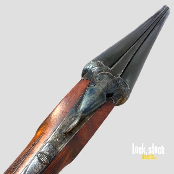 The side-by-side barrel design of the Helice shotgun provides excellent balance, offering both aesthetics and superior handling. The hammerless action adds to the practicality of the gun, allowing for faster, smoother operation. This Helice double barrel shotgun is a versatile firearm that performs exceptionally well in clay shooting, game hunting, or as a valuable display piece in a vintage shotgun collection.