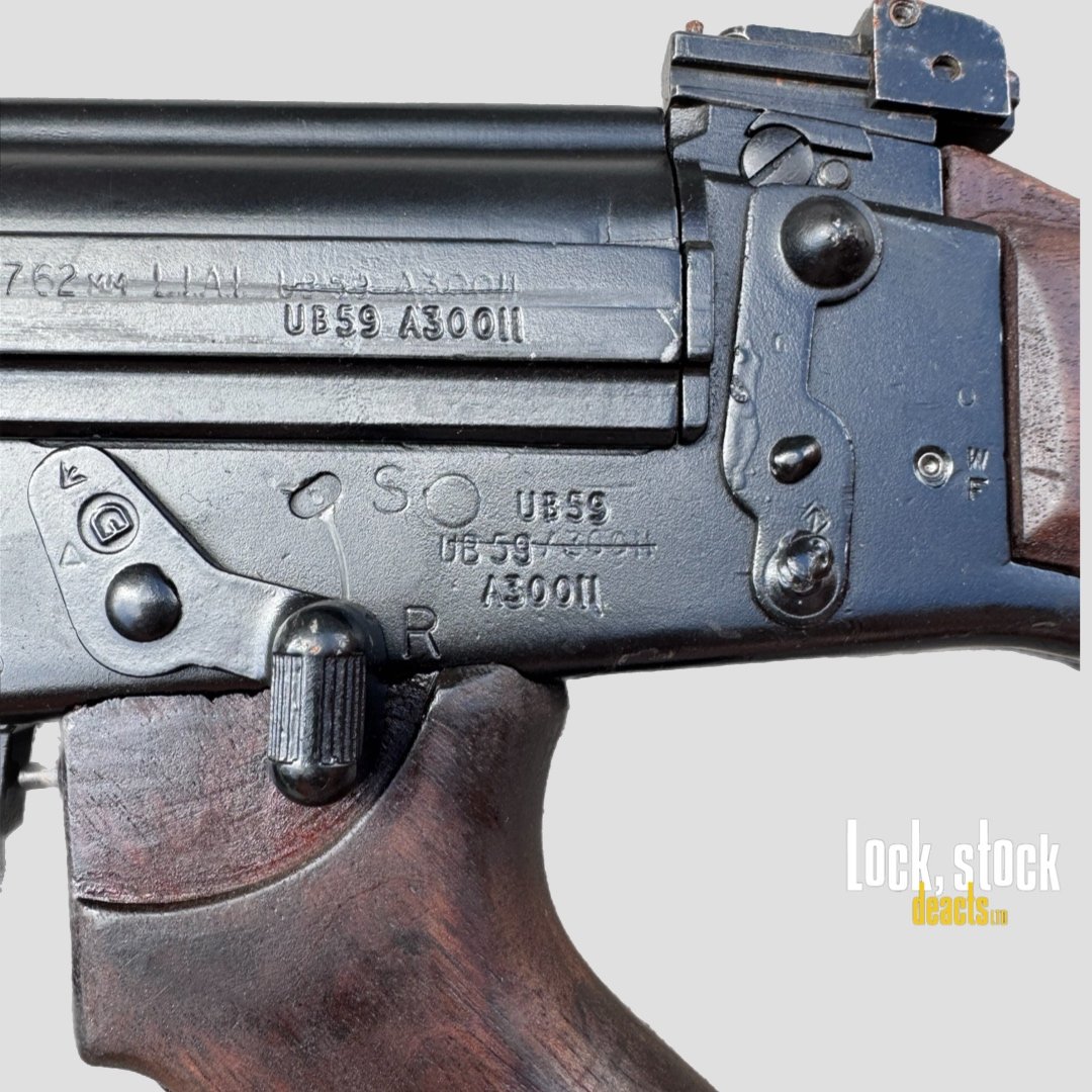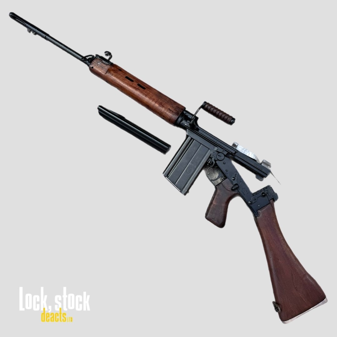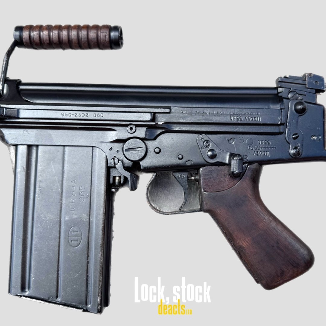 Own a legendary piece of British military heritage with this L1A1 SLR (Self-Loading Rifle), deactivated to current UK/EU specification and featuring original wooden furniture. Chambered in 7.62x51mm NATO, this iconic semi-automatic rifle was standard issue for the British Armed Forces from the late 1950s through to the 1980s, used in conflicts such as the Falklands War, the Troubles in Northern Ireland, and the Cold War.
