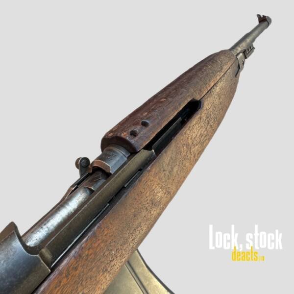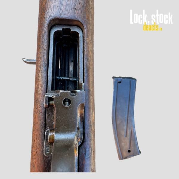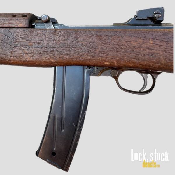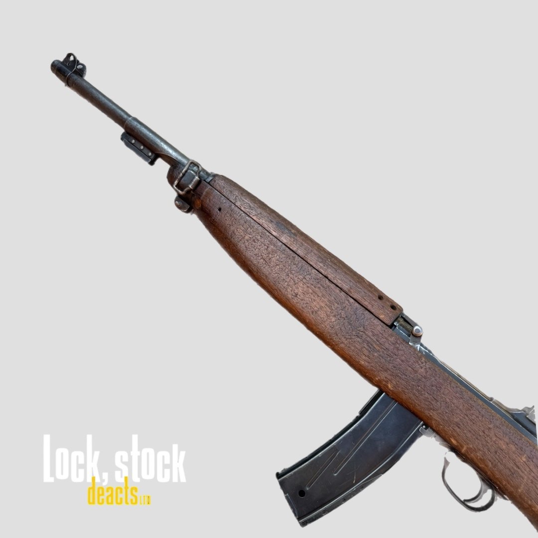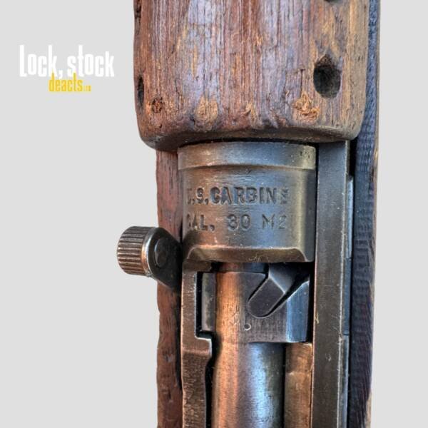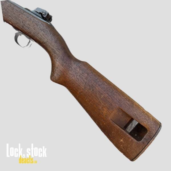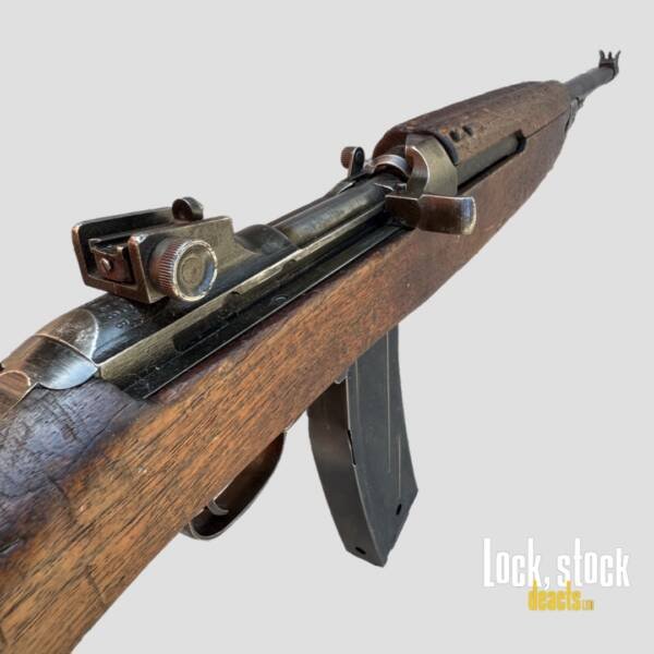 This deactivated WW2 M2 Carbine rifle is an iconic piece of American military history, representing one of the most widely issued small arms of the Second World War. Developed as an evolution of the M1 Carbine, the M2 featured select-fire capability, making it a versatile and highly valued weapon for US troops in combat.