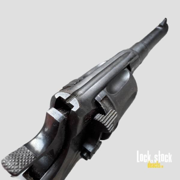 The Nagant M1895 is a Russian revolver chambered in 7.62x38mmR, known for its distinctive gas-seal system, where the cylinder moves forward to seal the gap between the barrel and the cylinder during firing. This increased muzzle velocity and made the Nagant unique. Introduced in 1895, it was used by Russian and Soviet forces from the late 19th century through World War II and beyond. The revolver is known for its rugged design and was commonly issued to officers and cavalry.