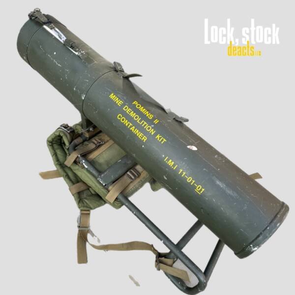 The POMINS II kit normally includes a variety of components, such as explosive charges, detonation cords, safety fuses, and tools for deployment, ensuring precise and controlled detonation. It is known for its versatility, enabling safe mine clearance in a range of terrains, including urban, rural, and conflict-affected zones. The compact and robust design ensures that all necessary equipment can be transported efficiently while providing durability under the harshest conditions. This is a deactivated Version so will not include explosive charges, detonation cords, safety fuses, and tools as listed above.