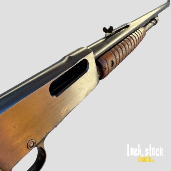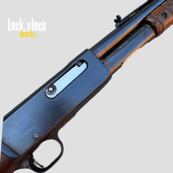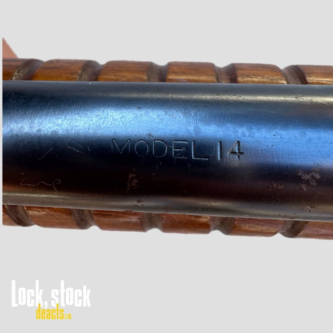 This deactivated Remington Model 14 pump-action shotgun is a superb example of early 20th-century American gun design. Manufactured by Remington Arms, one of the most iconic names in firearms history, the Model 14 is renowned for its reliability, solid construction, and smooth pump-action mechanism.