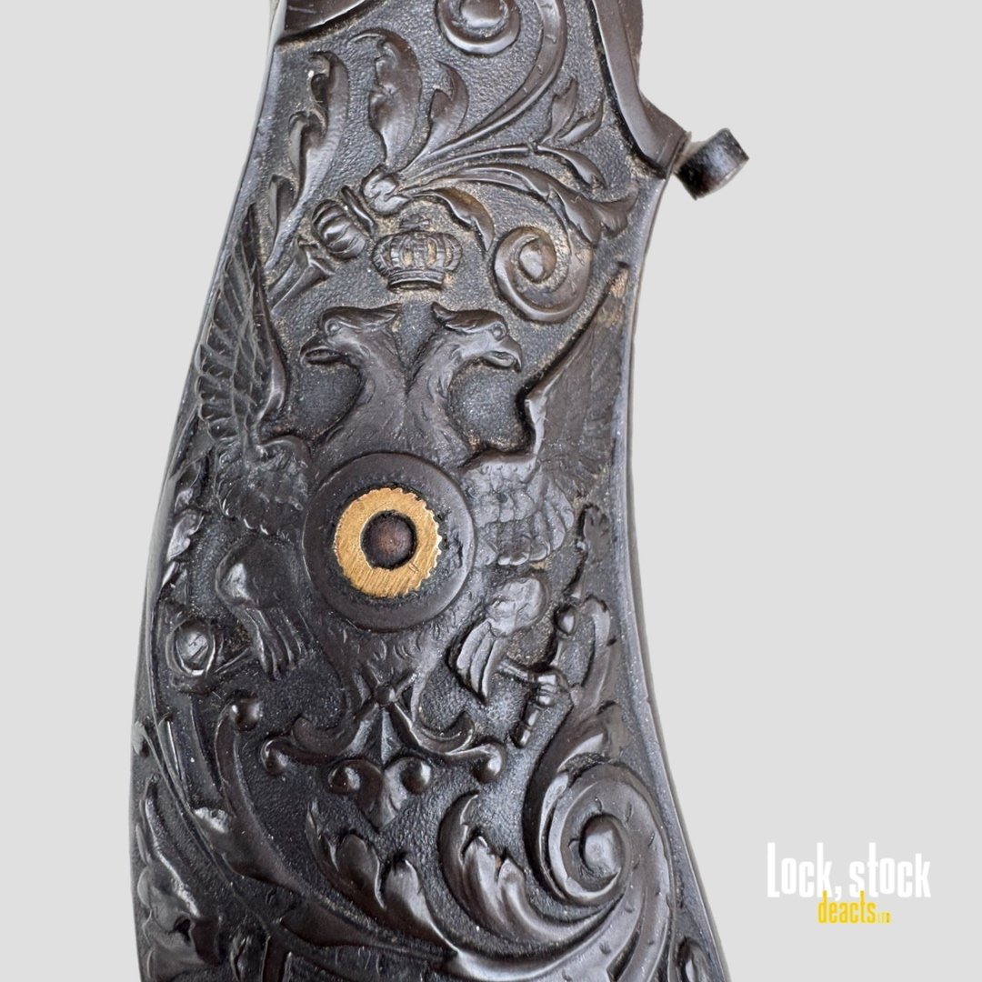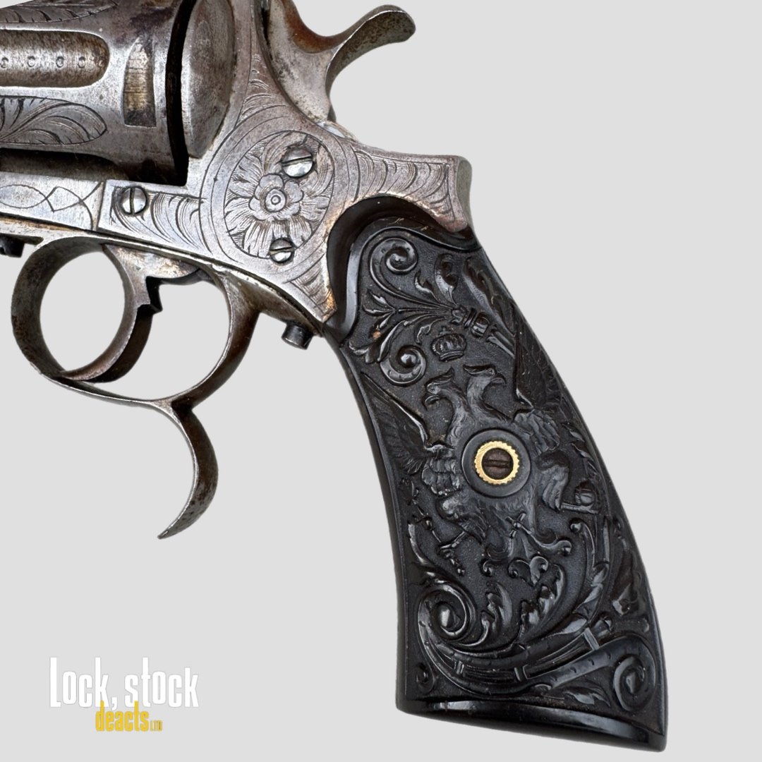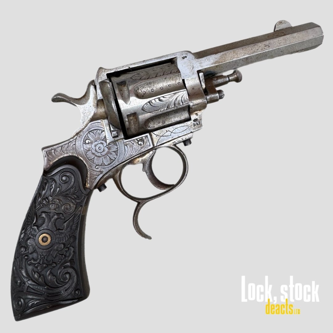 The Shatterer revolver, with its solid-frame construction and traditional blued finish, offers a commanding presence reminiscent of revolvers used in military and police forces across Europe. Its robust build and period styling make it a favourite among militaria enthusiasts and deactivated firearms collectors alike.