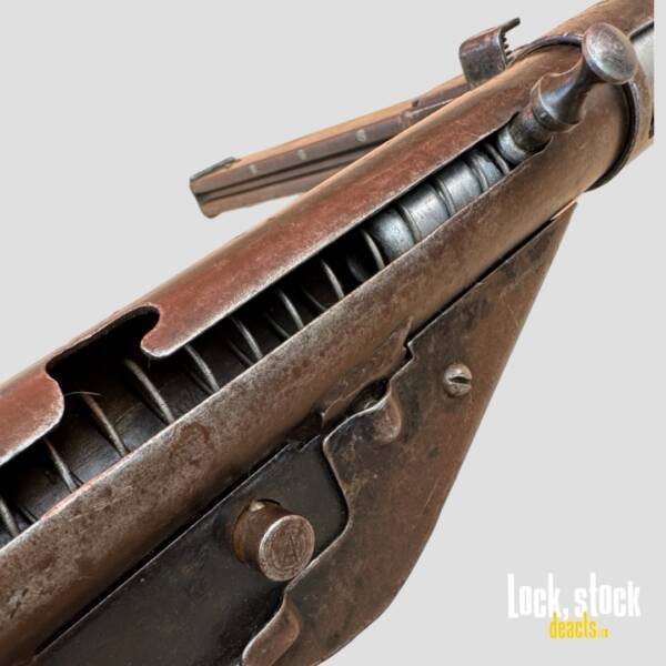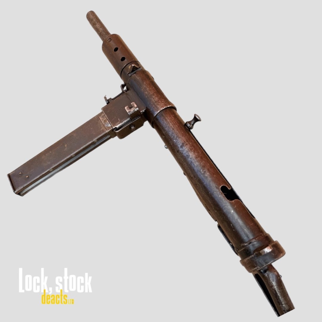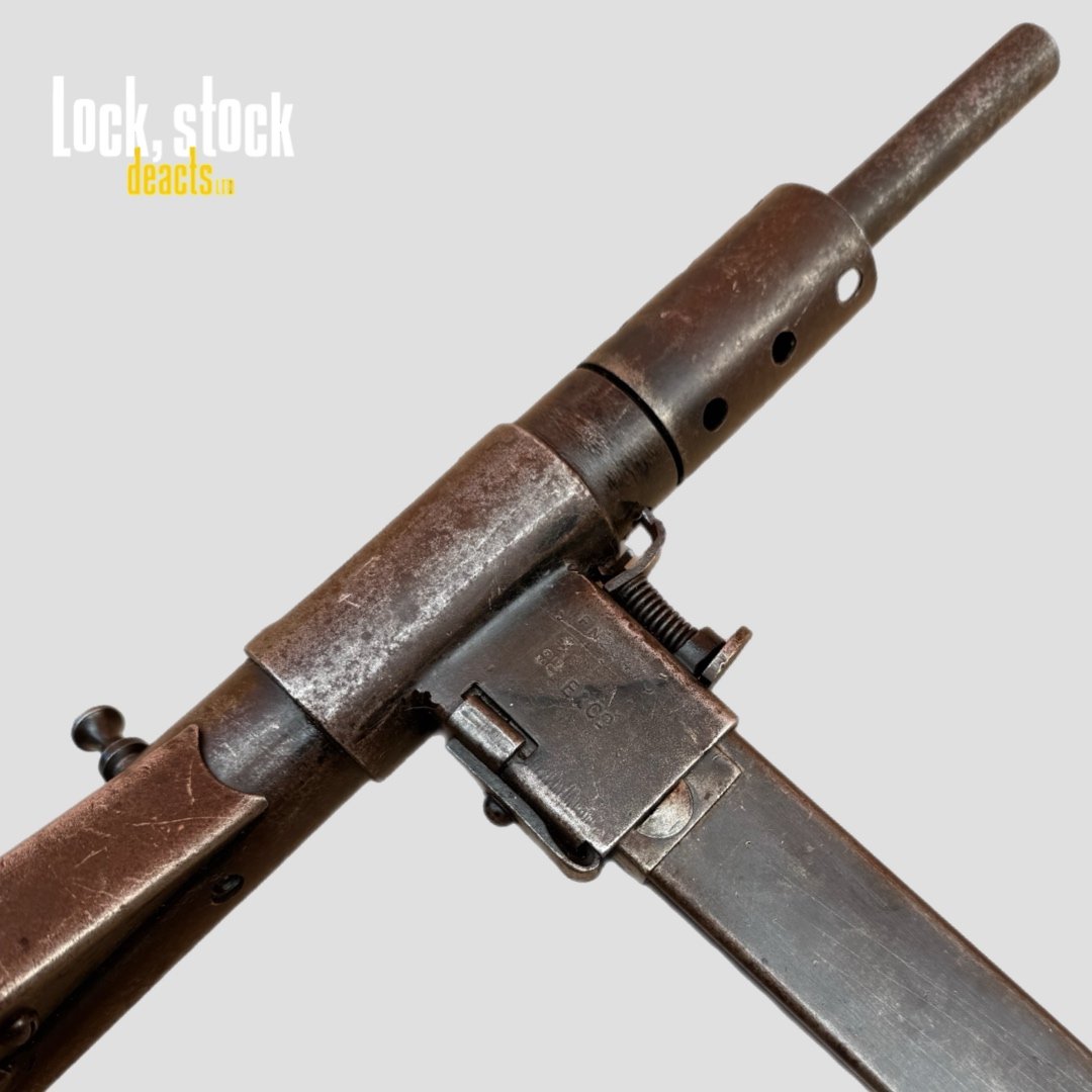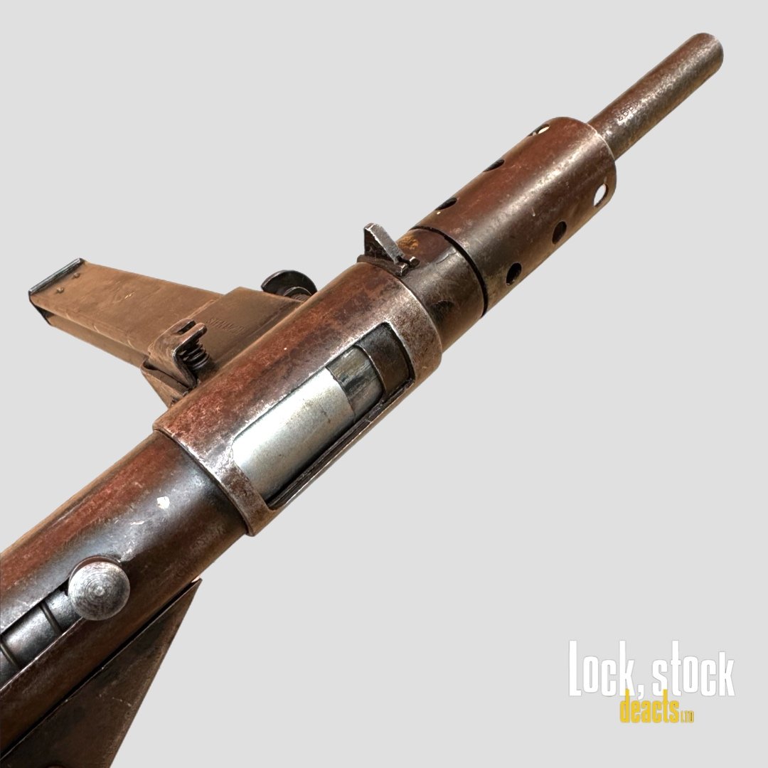 This example has been professionally deactivated to EU/UK Specifications, ensuring complete safety while retaining moving parts where permitted. The deactivated Sten Mk2 SMG is an authentic collectable, perfect for display, re-enactments, or military history enthusiasts.