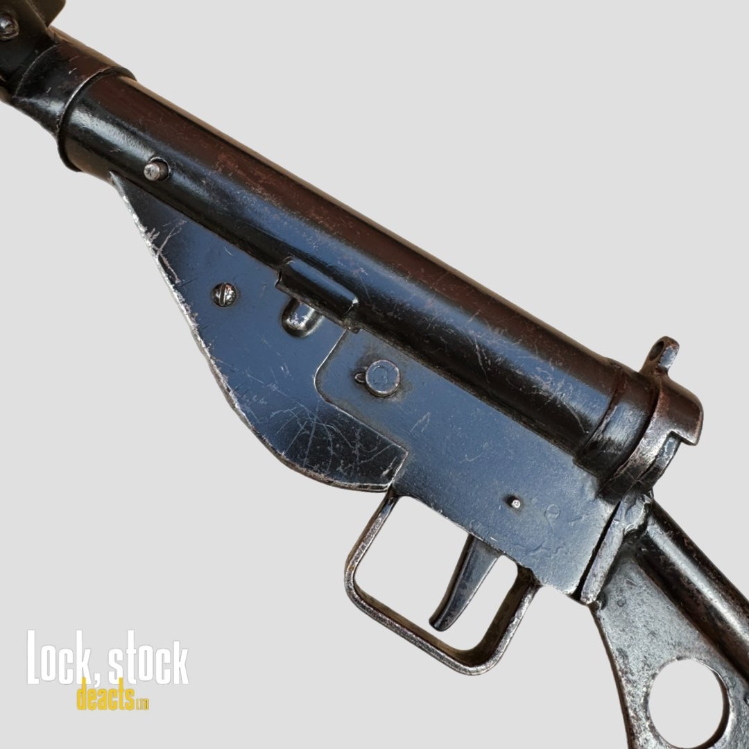 This Sten SMG Mk2 has been professionally deactivated to UK Specification, ensuring it is completely safe while retaining moving parts where permitted. As a result, it remains a highly collectable and authentic piece of military history, perfect for collectors, re-enactors, or museum display.
