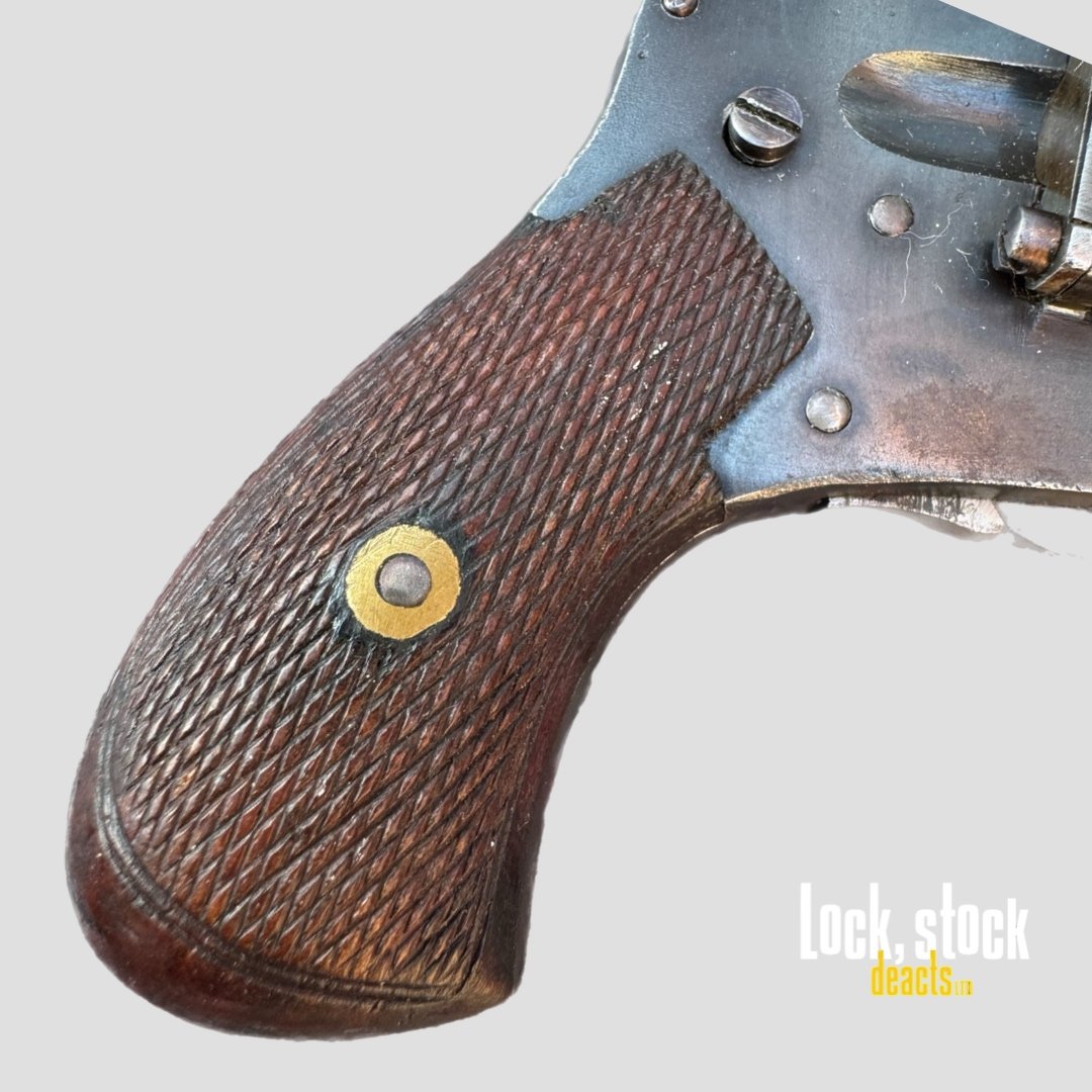Step back in time with this elegant Deactivated Velo-Dog Revolver in .32 calibre, a compact and discreet revolver originally designed in the late 19th century for cyclists and gentlemen requiring personal protection on the road. Named after the French term vélo (bicycle) and dog, these pocket revolvers were specifically created to deter aggressive dogs and occasional assailants.