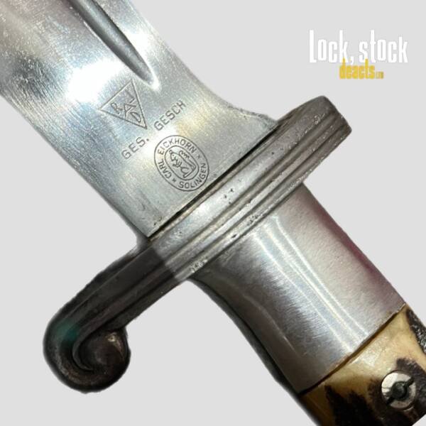The RAD Man’s Dagger is one of the most visually striking of the Third Reich dress daggers, with its bold blade etching and emblematic hilt. Pieces marked Ges. Gesch. Solingen are especially appealing to collectors, as they represent Solingen’s renowned craftsmanship. Complete and original examples such as this remain in demand among militaria collectors and museums focused on edged weapons and the social history of the period.